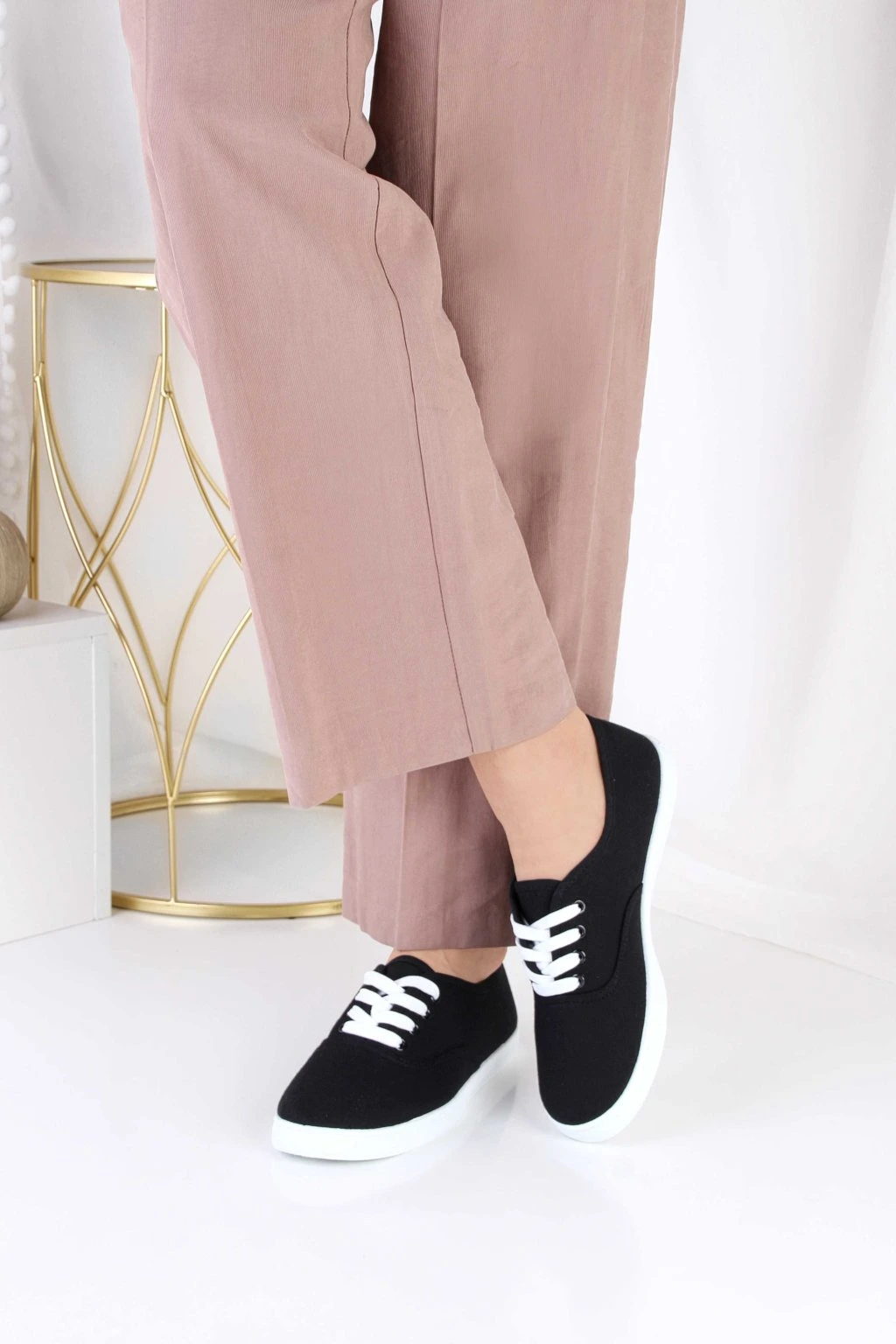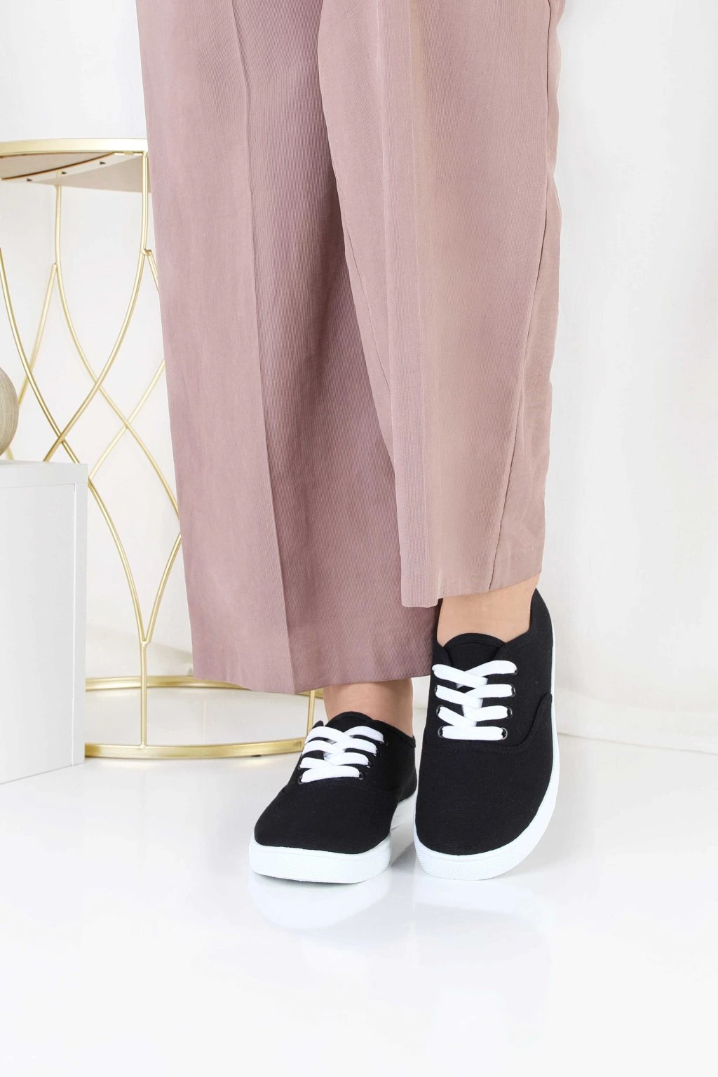 Czarne tenisówki płócienne z białymi sznurówkami