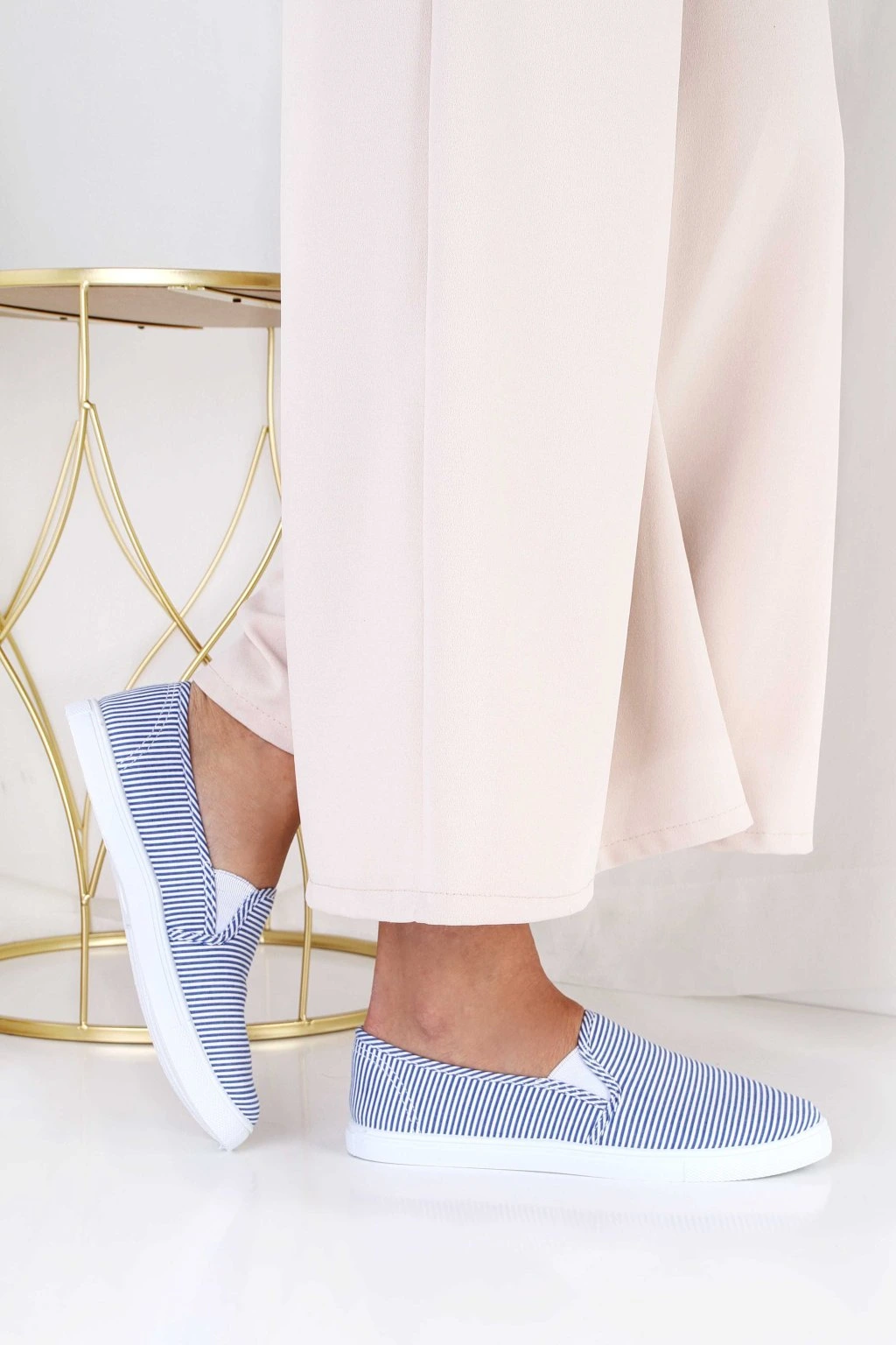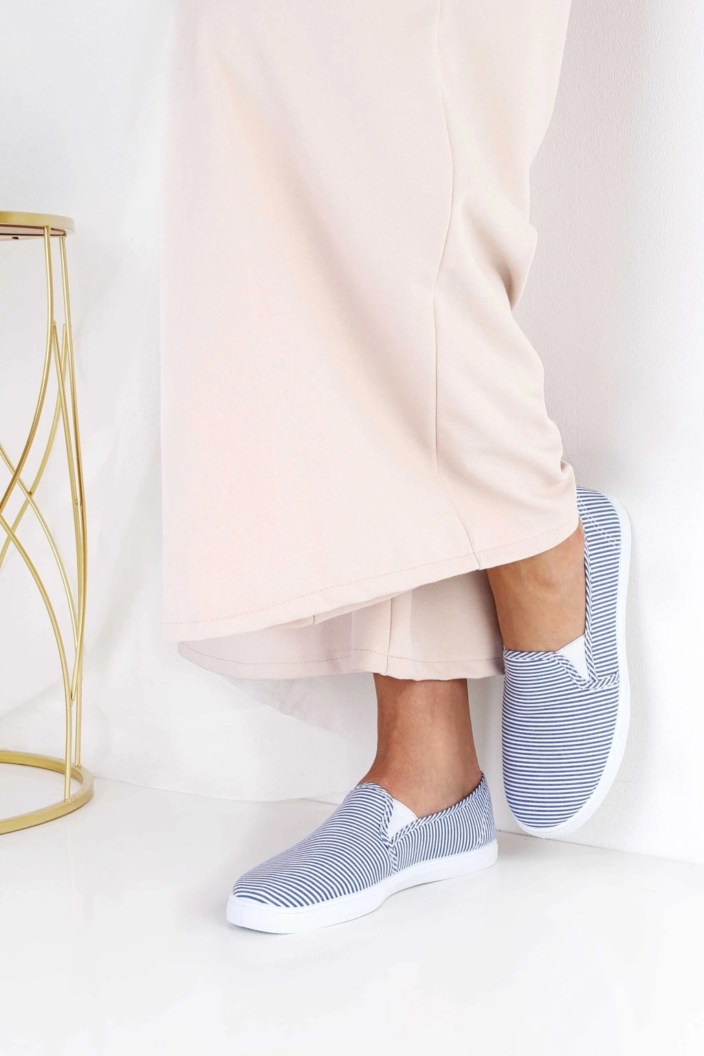 Damskie tenisówki typu slip-on to wygodny wybór na co dzień. Wsuwana konstrukcja ułatwia szybkie zakładanie i dopasowanie do stopy. Cholewka w granatowo-białe paski nadaje butom lekki, wakacyjny charakter. Biała, gumowa podeszwa podkreśla sportowy styl i dobrze komponuje się z casualowymi stylizacjami. Model świetnie sprawdzi się do spodni, szortów i sukienek w miejskich zestawach.