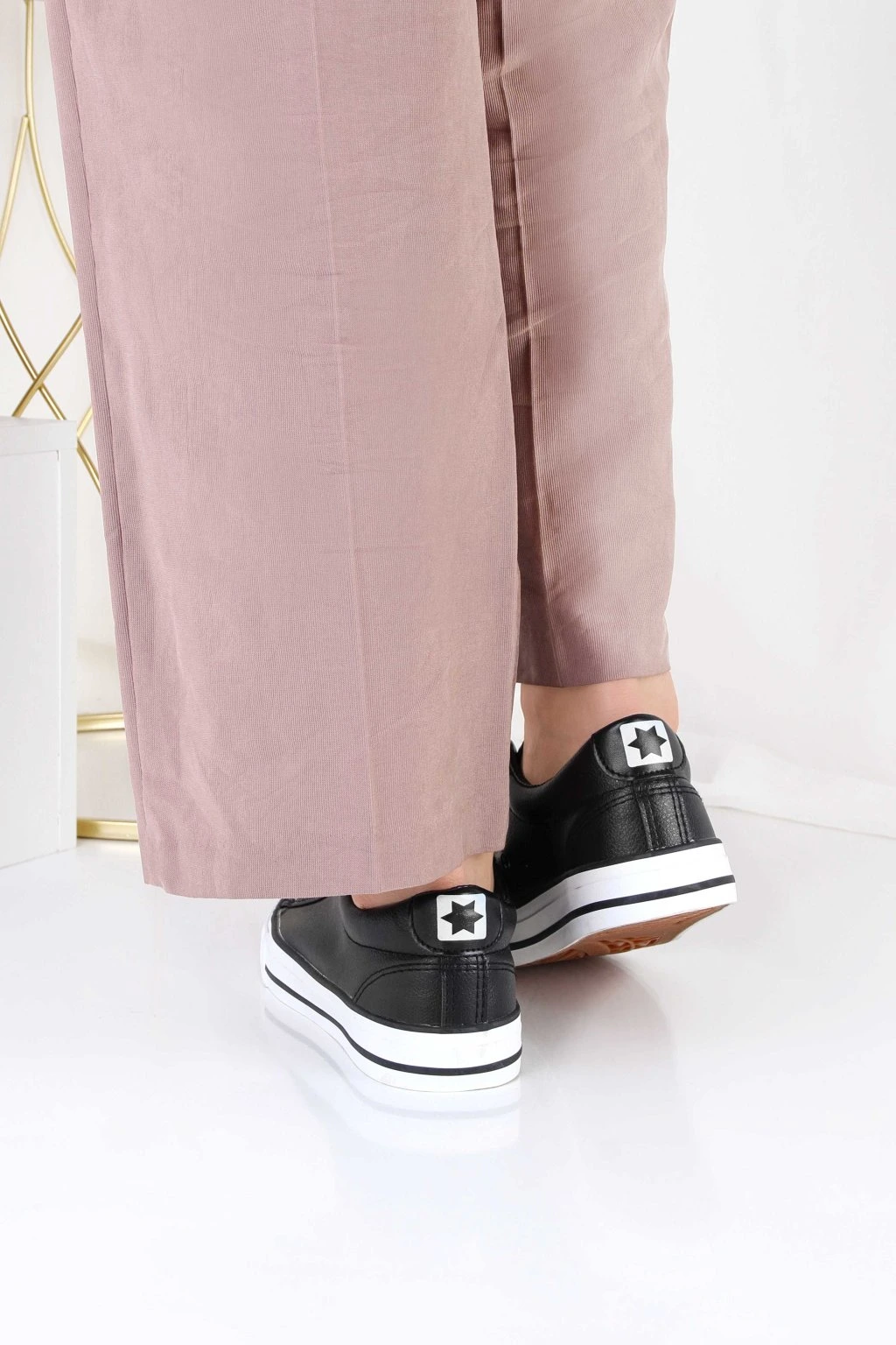 Damskie trampki czarne z białą podeszwą