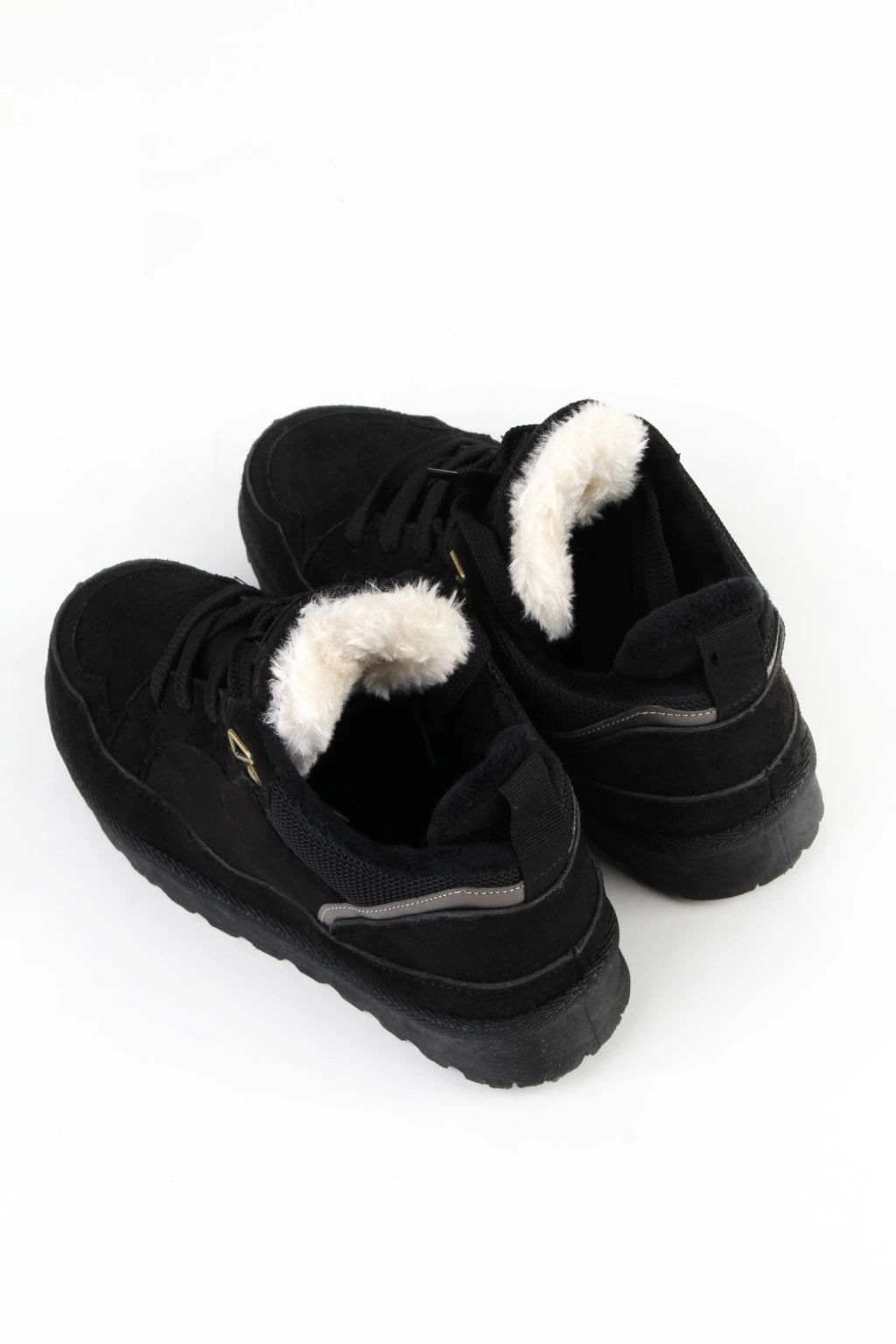 Te ocieplane sneakersy w czarnym kolorze to praktyczny wybór na chłodniejsze dni. Model ma wyższą cholewkę i miękkie, jasne ocieplenie widoczne przy kołnierzu. Klasyczne sznurowanie pozwala dobrze dopasować but do stopy. Gruba, bieżnikowana podeszwa dodaje stabilności i sprawdza się na co dzień. Minimalistyczny wygląd z delikatnymi przeszyciami sprawia, że łatwo dopasujesz je do miejskich stylizacji.