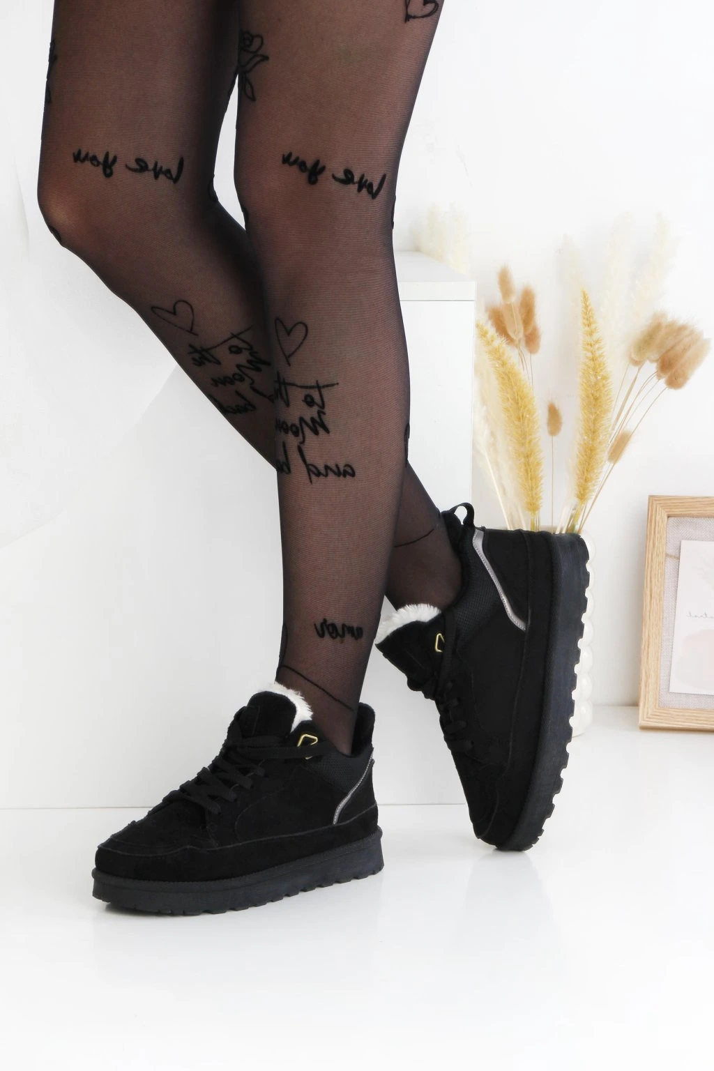 Ocieplane czarne sneakersy
