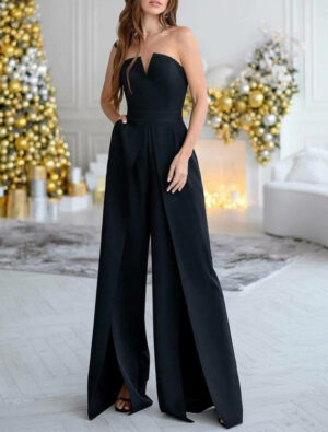 Awangardowa sukienka maxi z gorsetowym topem pięknie podkreśla smukłą szyję i ramiona. Jednocześnie przyciąga wzrok nietypowym fasonem spódnicy, która składa się z licznych pionowych pasów. Nieco nonszalancji dodają ukryte kieszenie.