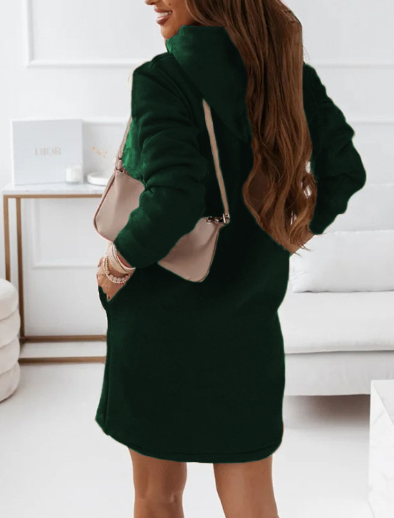 Codzienna sukienka dresowa z kapturem – casualowy styl – do noszenia jako bluza lub jako tunika – długie rękawy