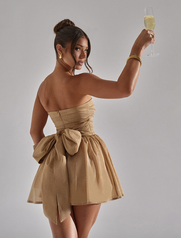 Rozkloszowana sukienka mini bez ramiączek to idealny wybór na letnie przyjęcia i imprezy. Jej lekki fason dodaje sylwetce lekkości, a brak ramiączek podkreśla dekolt i ramiona. Idealna na letnie przyjęcia czy wesela.
