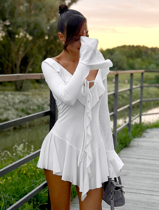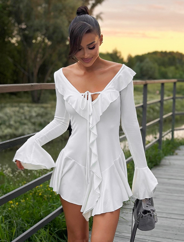 Sukienka mini z falbaną i dużym dekoltem Rukiye