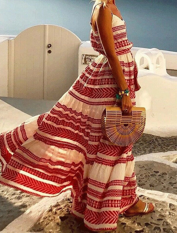 Długa sukienka w stylu boho na ramiączkach