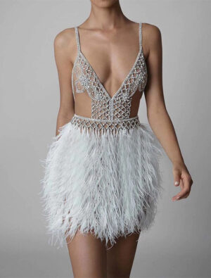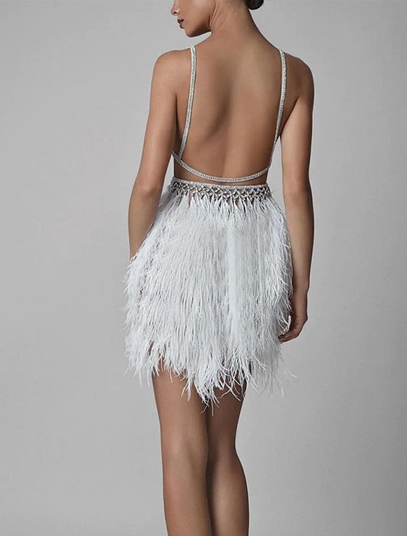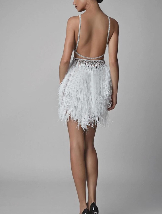 Sukienka mini ze spódnicą z piór